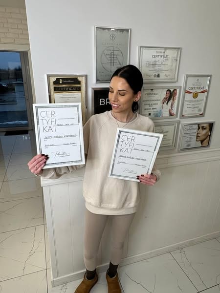 - Dyplomy i certyfikaty – najlepiej wybierać osoby posiadające dyplom, a nie tylko certyfikaty. To gwarancja profesjonalnego przeszkolenia i znajomości technik zabiegowych.